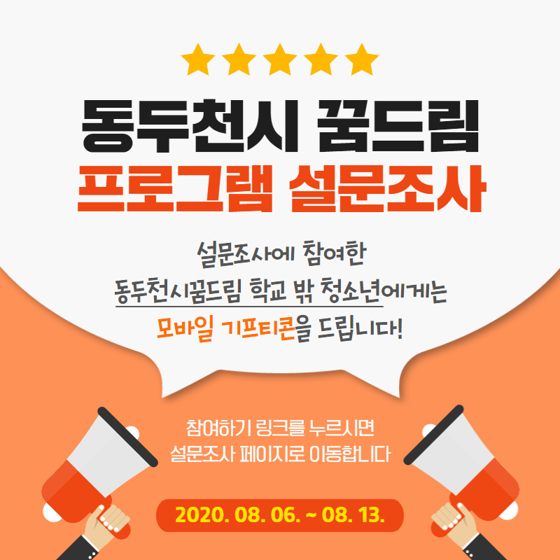 동두천시청소년지원센터 꿈드림 하반기 프로그랢을 위한 설문조사를 실시합니다.