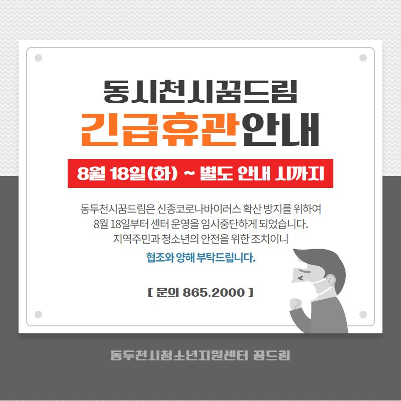 동두천시꿈드림 휴관 이후 일정에 대해 안내해드립니다.