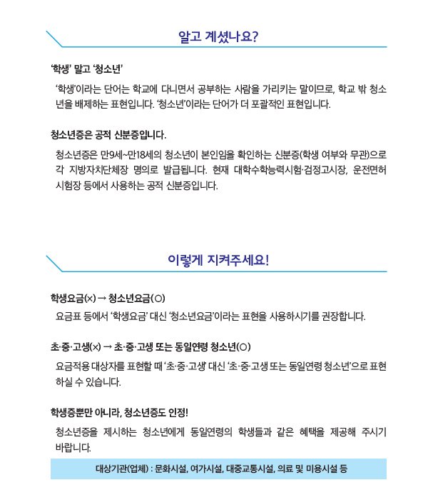 평소에 다니면서 '청소년요금'이 아닌 '학생요금'으로 표시한 곳 이 있다면 사진 찍어📸 신고해주세요.