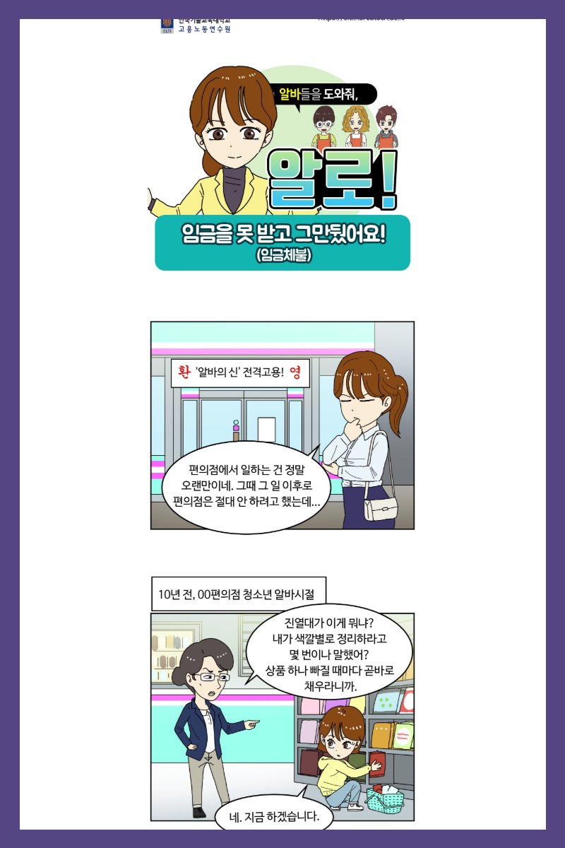 * 청소년고용노동교육 웹툰 "알바들을 도와줘, 알로!"를