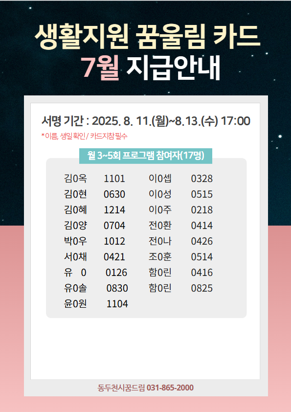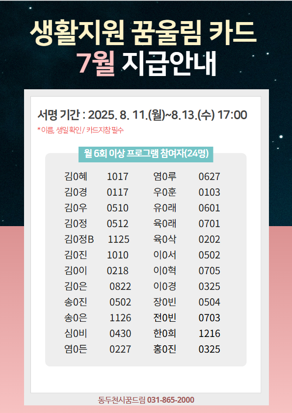 * 서명기간 내 서명하지 않을 경우 생활비 지원 불가