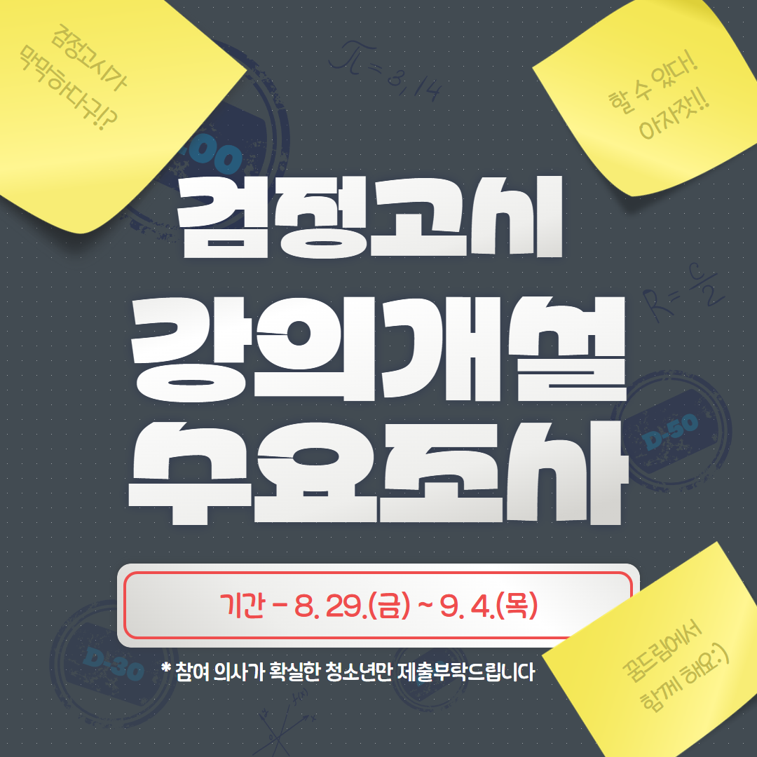 검정고시를 준비하는 청소년을 위한 학습강의개설 수요조사입니다