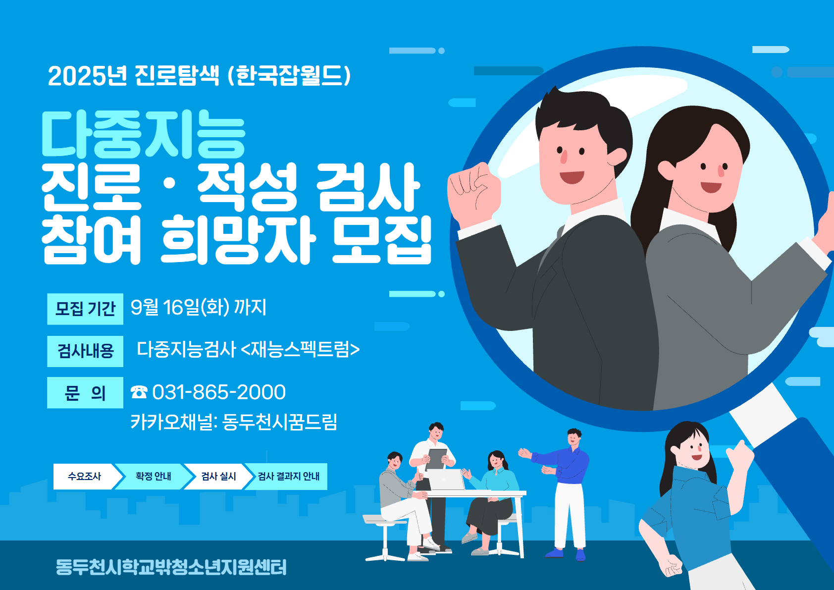 숨겨진 잠재력을 발견하고, 앞으로의 진로와 적성을 탐색하는 데 큰 도움이 될 <재능스펙트럼> 다중지능검사 참여자를 모집하고 있습니다! ✨