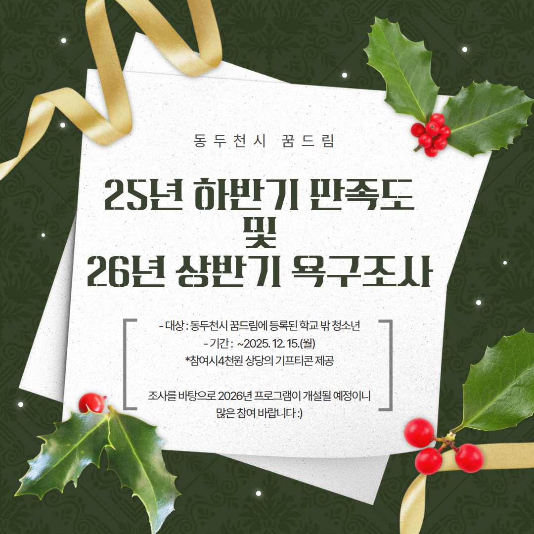 ○ 조사내용 : 동두천시 꿈드림 운영과 관련된 2025년 하반기 만족도 조사 및 2026년 상반기 욕구조사
